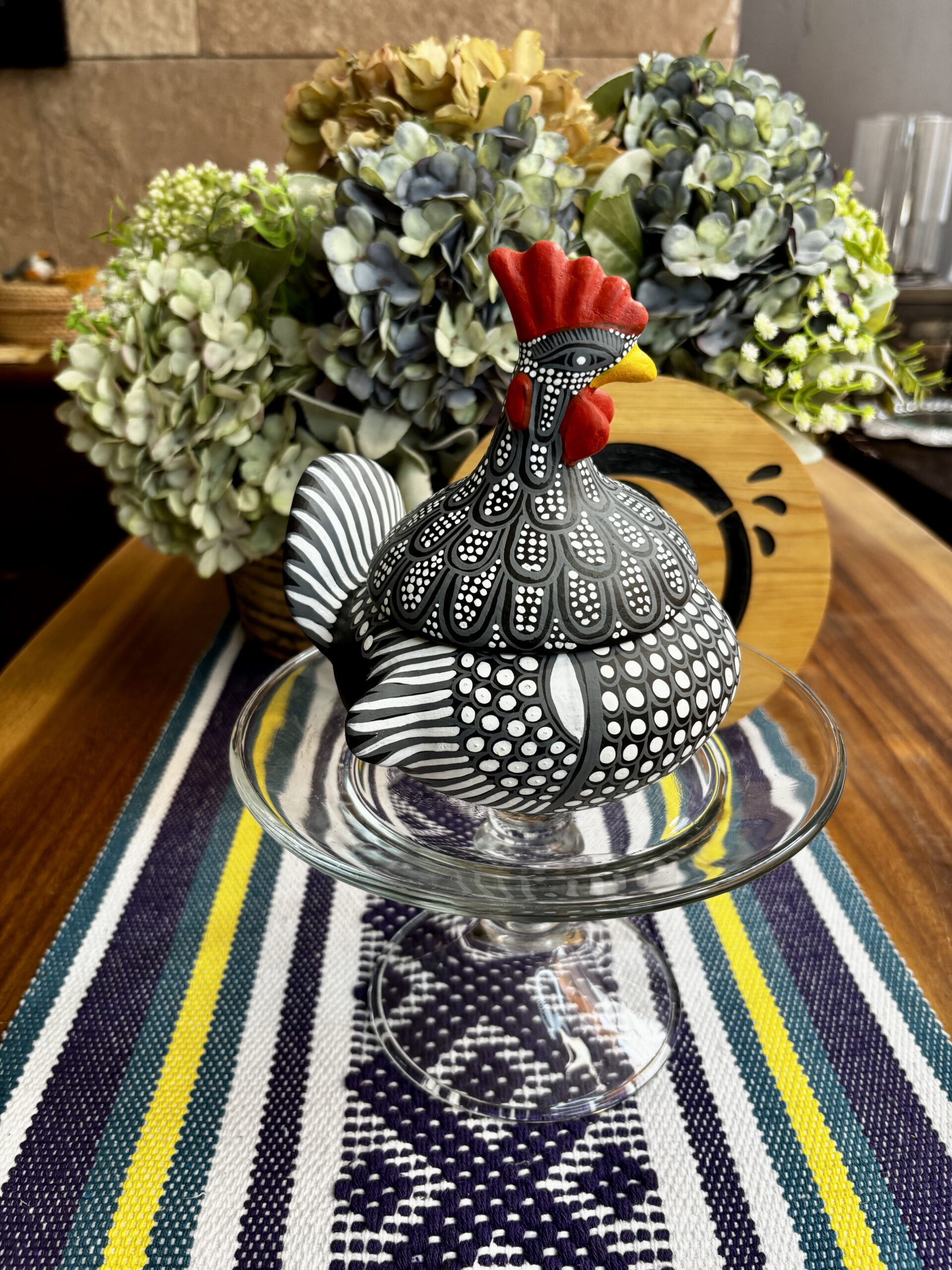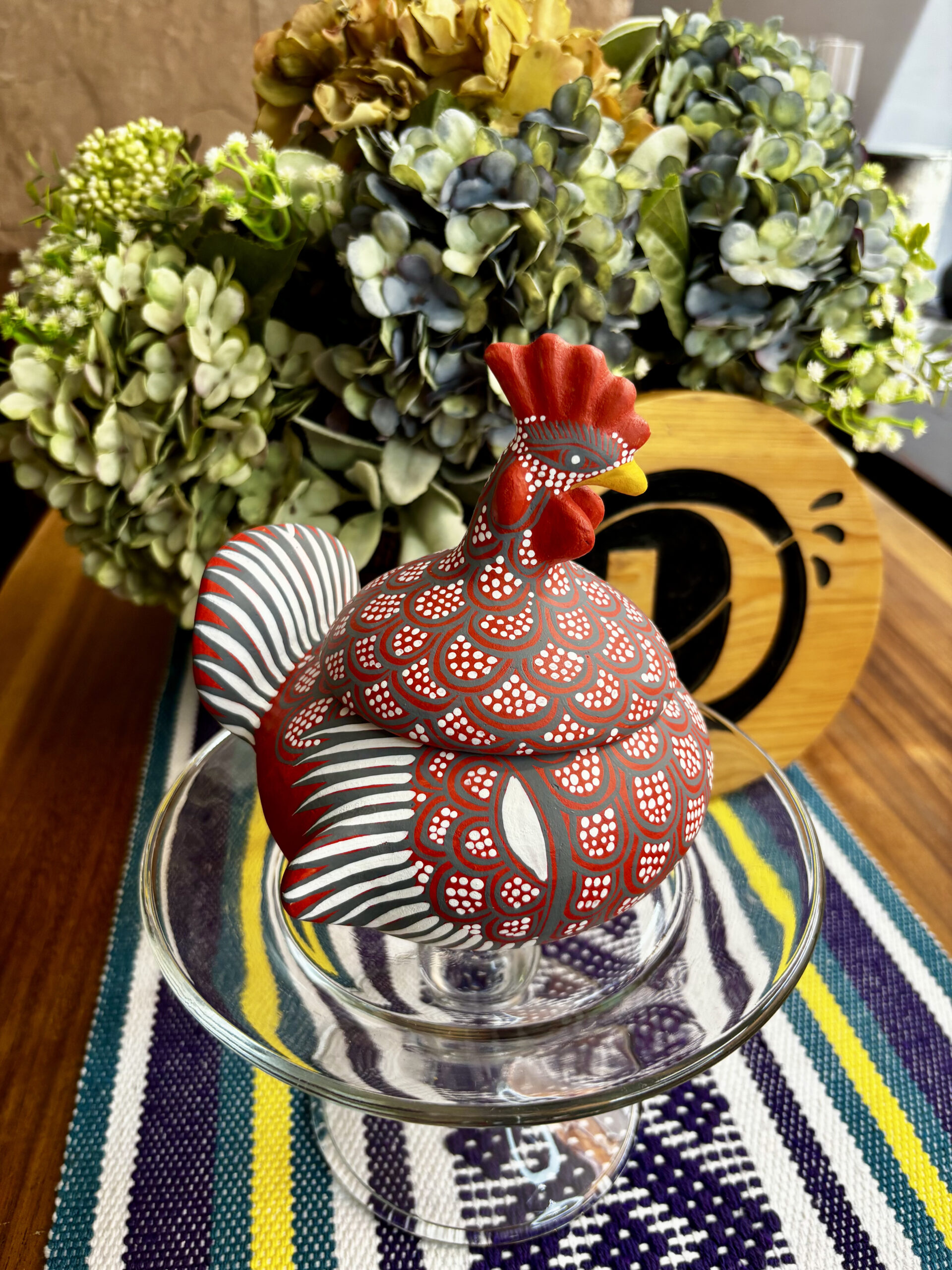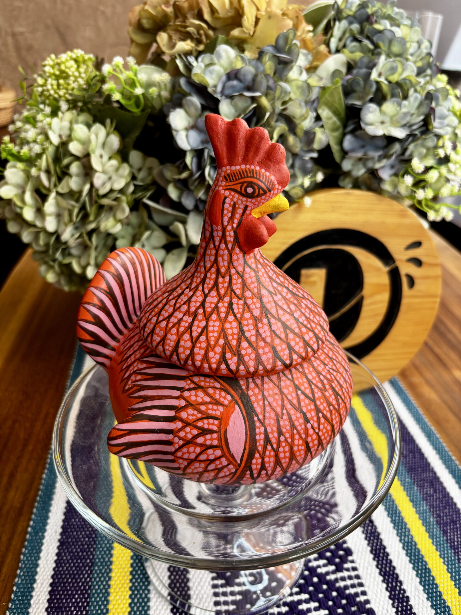 Gallito de barro pintada a mano en figuras geométricas