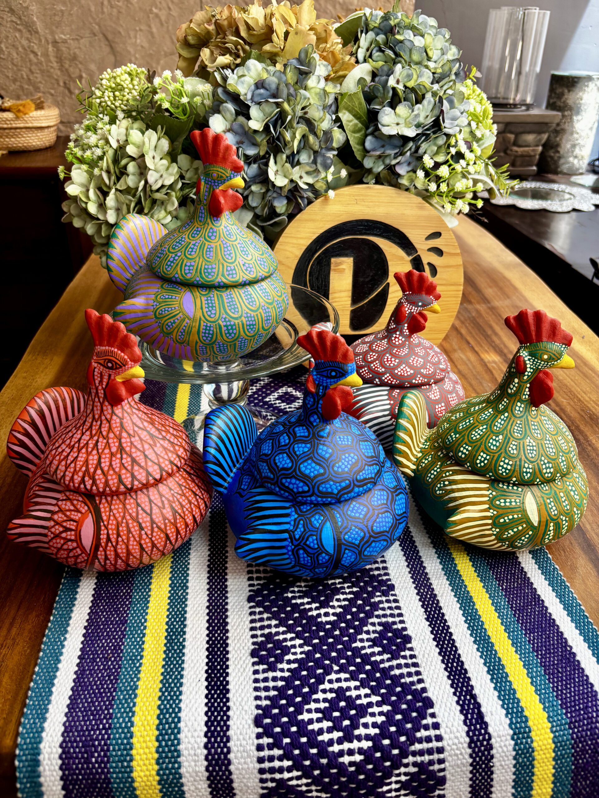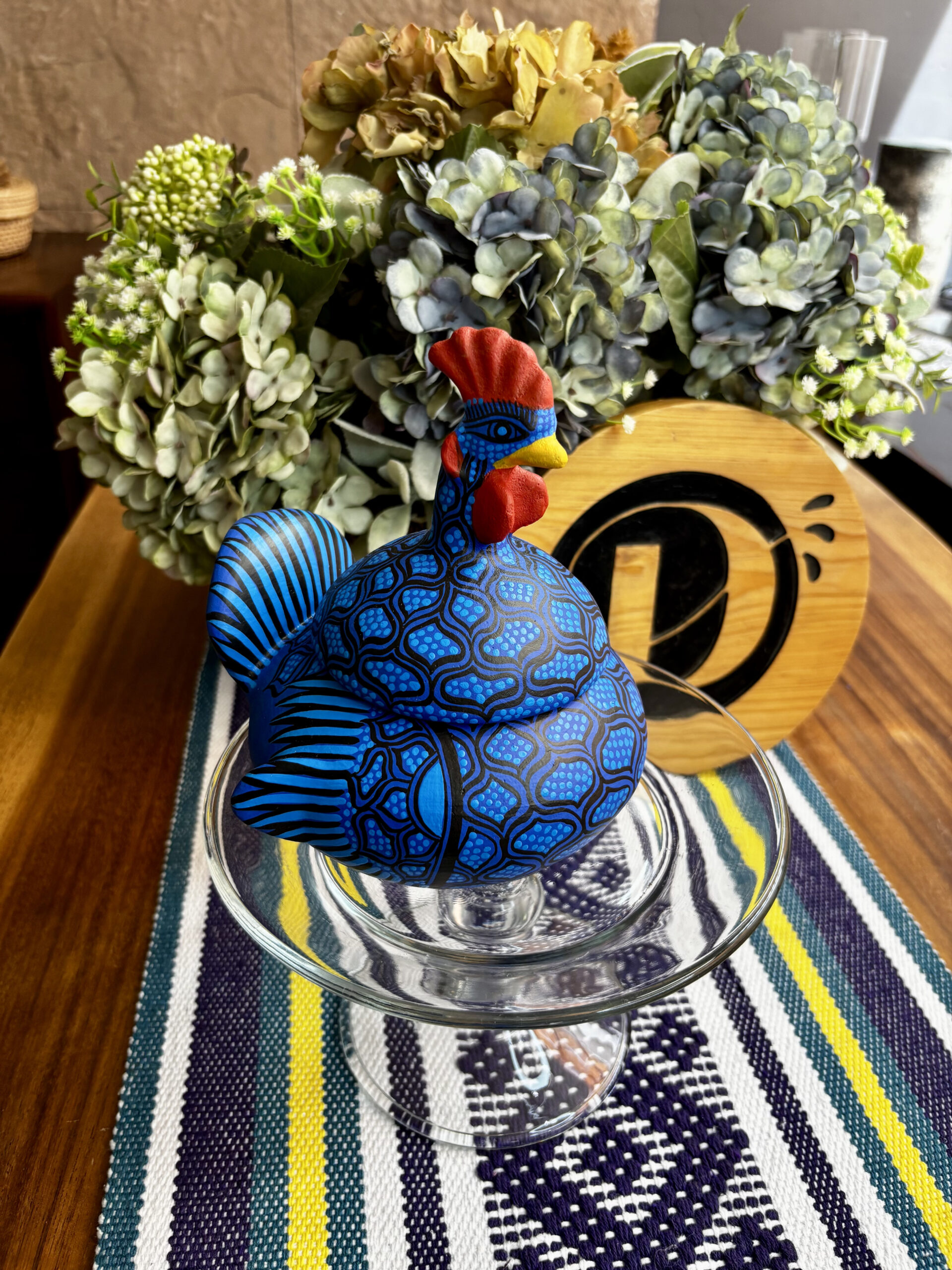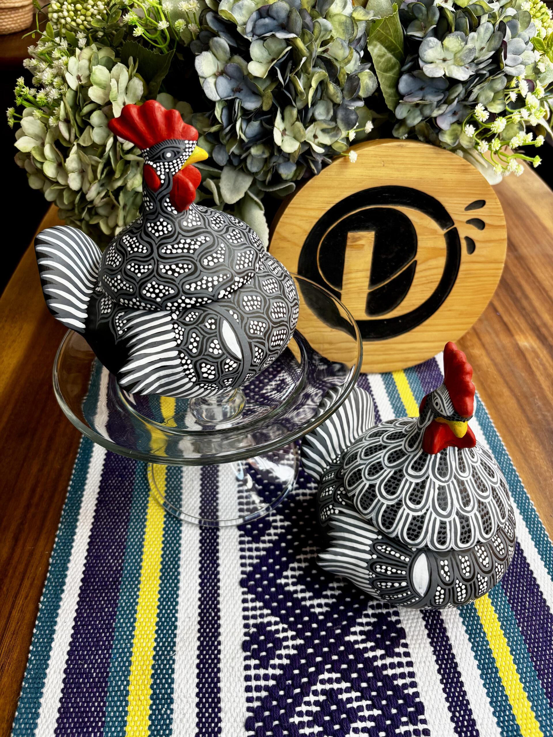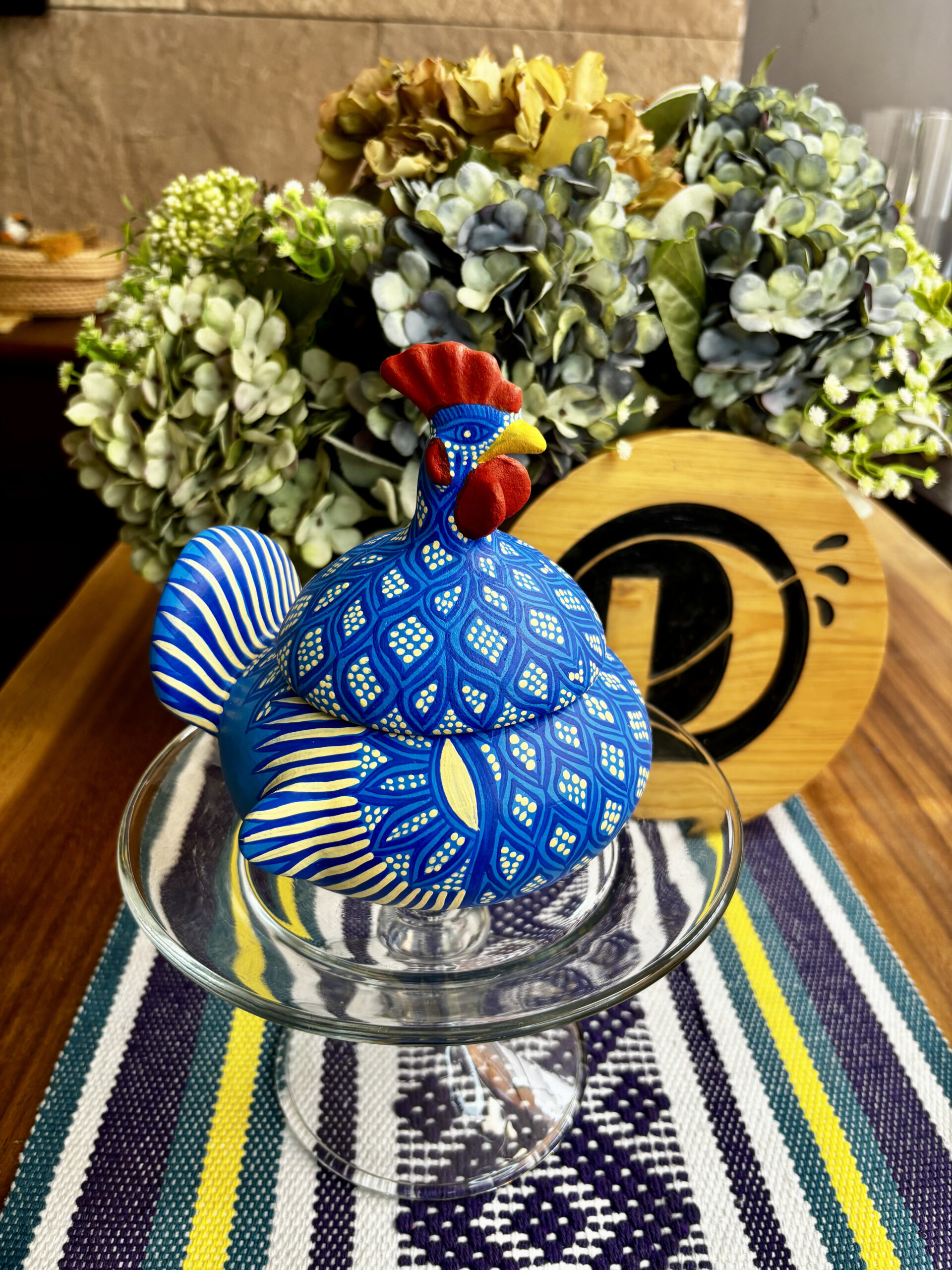 Gallito de barro pintada a mano en figuras geométricas
