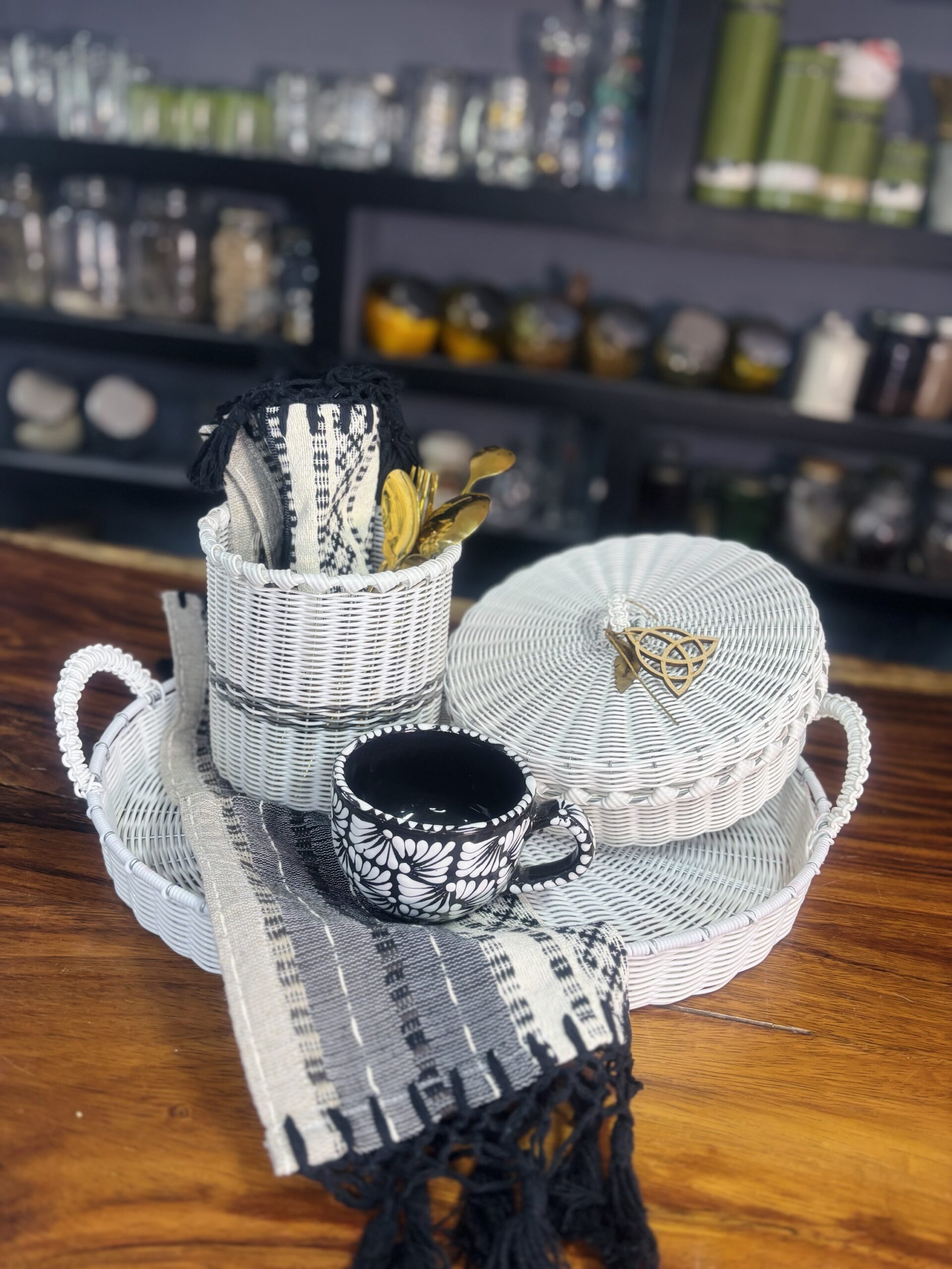 Charola de 40 cm, cesto multiusos y tortillero de un kilo