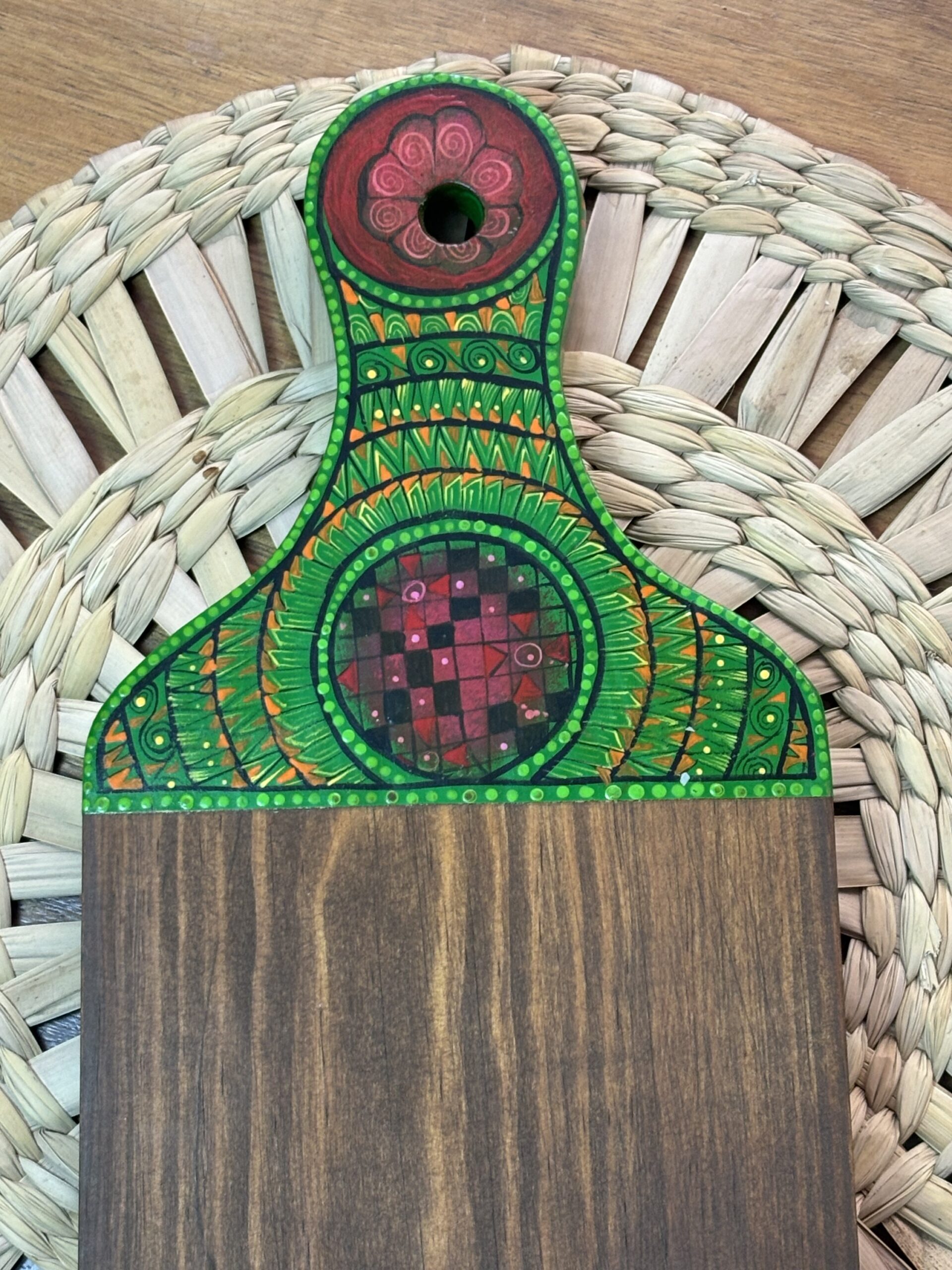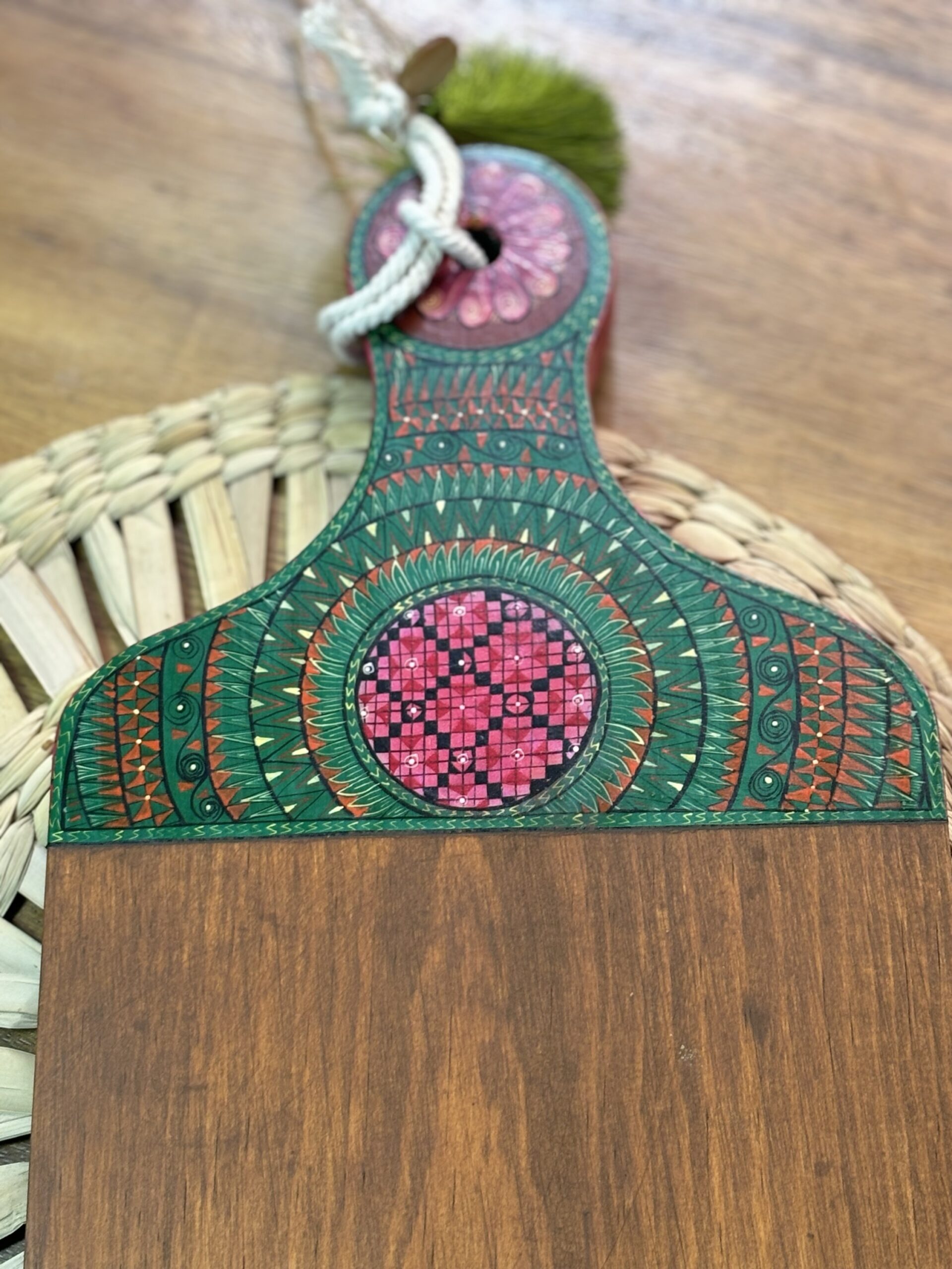 Set de 2 tablas y un servilletero de madera de pino pintada a mano por artesanos oaxaqueños en la reconocida técnica de alebrijes.