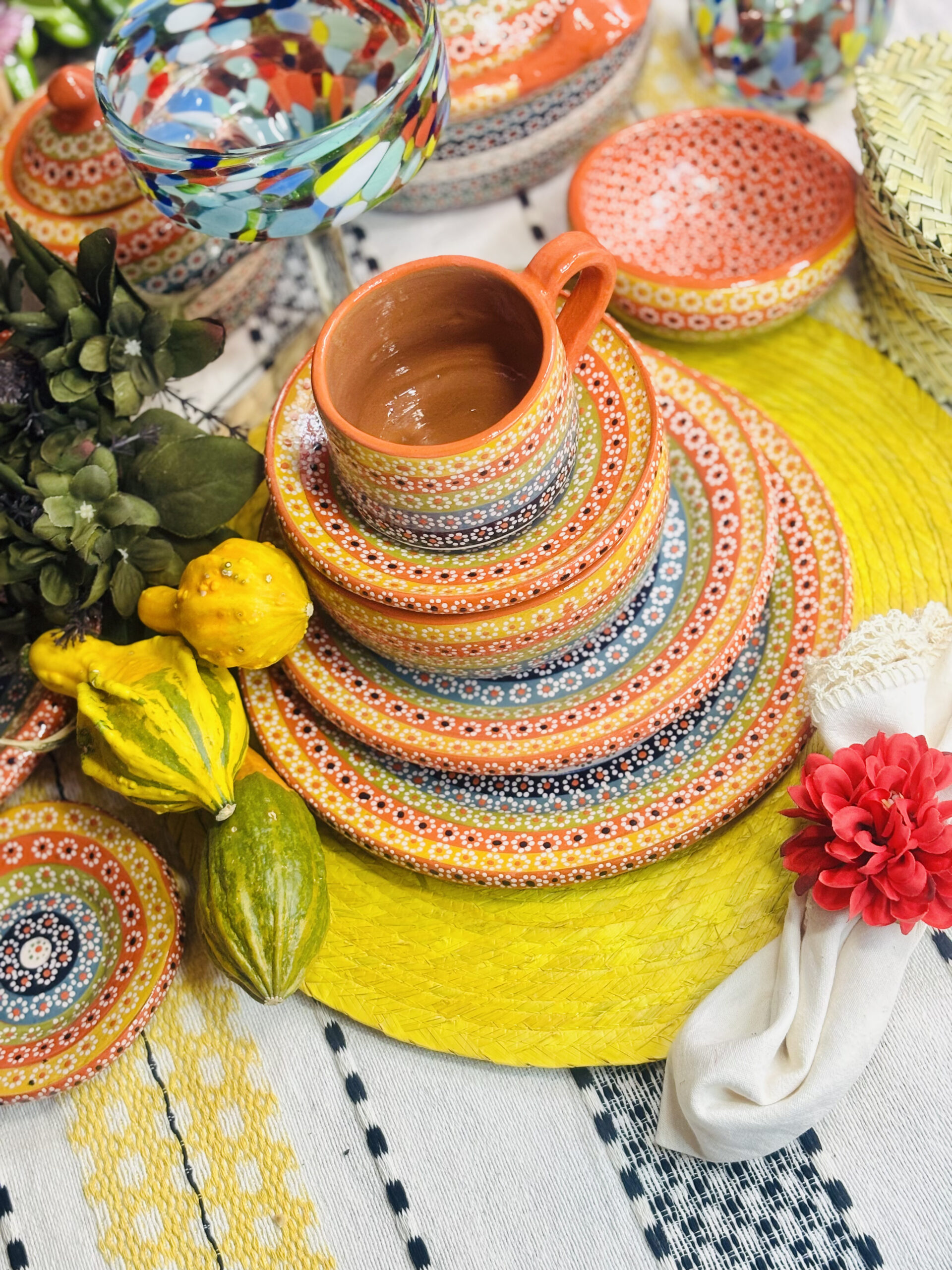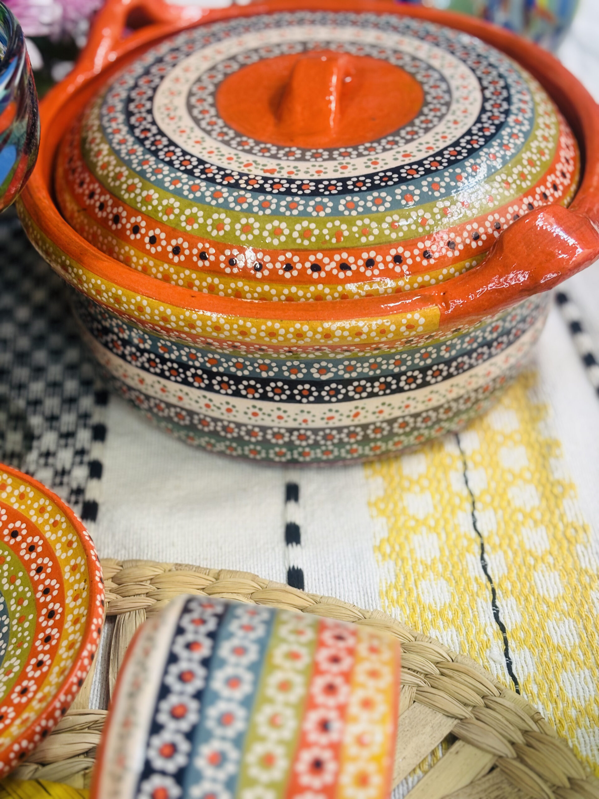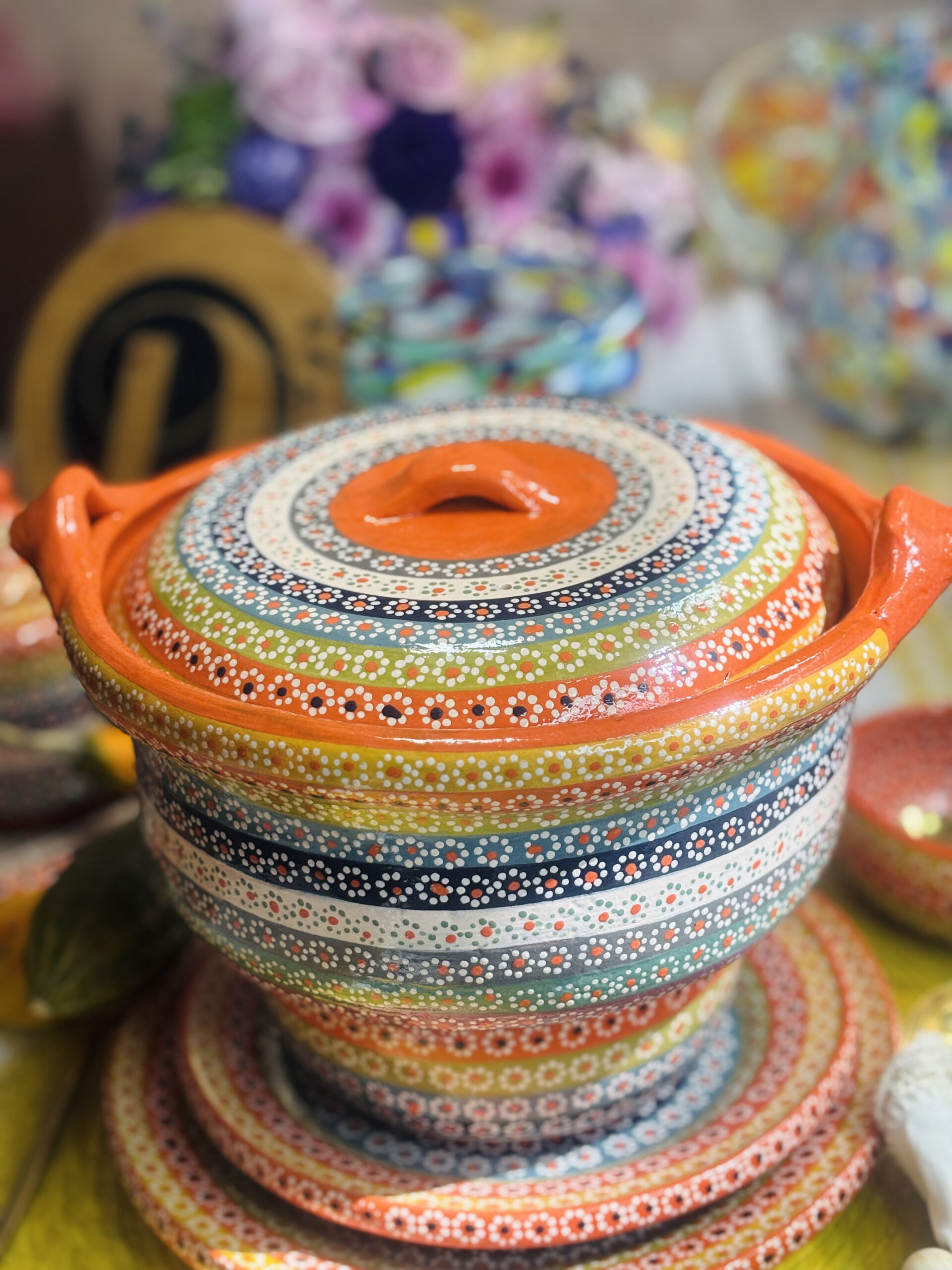 Barro decorado a mano con técnica de flor de capulin y esmaltado ( mas de 45 días de elaboración ) .